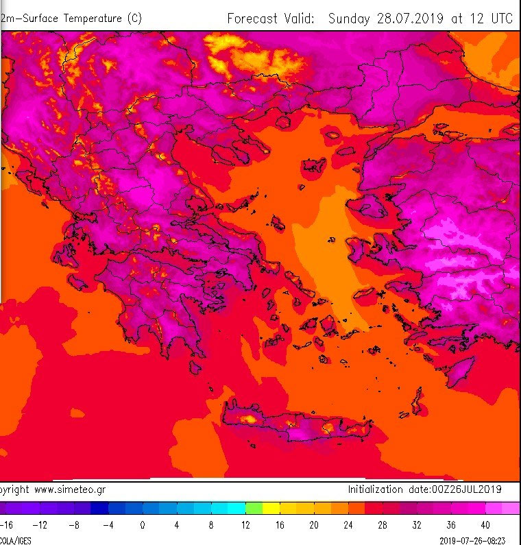 Υψηλές θερμοκρασίες αναμένεται να επικρατήσουν στο μεγαλύτερο μέρος της χώρας από σήμερα Σάββατο 27/07 έως και τουλάχιστον το τέλος του μήνα, με την Κυριακή 28/07 να είναι η θερμότερη ημέρα.