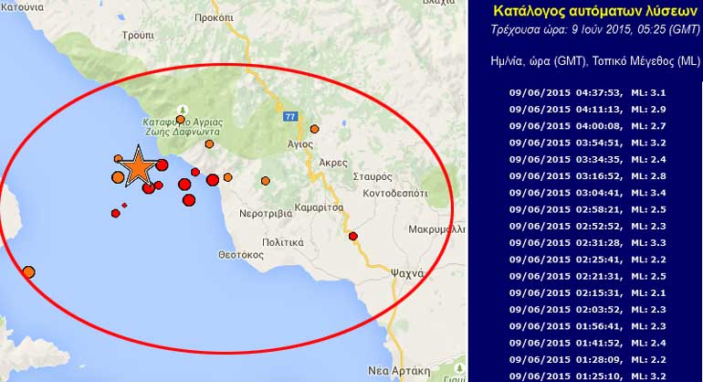 Συγκεκριμένα από την ώρα που σημειώθηκε ο ισχυρός σεισμός των 5,3 Ρίχτερ έχουν ακολουθήσει τρεις δονήσεις άνω των 3 Ρίχτερ: