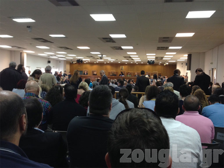 Η ένταση στο εσωτερικό της αίθουσας ήταν μεγάλη, καθώς συνήγοροι της πολιτικής αγωγής και ο δήμαρχος Κορυδαλλού ζήτησαν την αλλαγή χώρου, χωρίς ωστόσο το προεδρείο να κάνει δεκτό το αίτημα αυτό. Μάλιστα, η πρόεδρος δήλωσε αναρμόδια για κάτι τέτοιο, προτείνοντας μεταξύ άλλων τη συνέχιση της δίκης τα Σάββατα, όταν και τα σχολεία θα είναι κλειστά και τα παιδιά δεν θα έχουν εξετάσεις. Άλλη πρόταση ήταν η ακροαματική διαδικασία να συνεχιστεί κατά τη διάρκεια του καλοκαιριού μετά το πέρας των εξετάσεων.