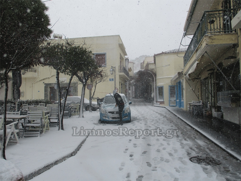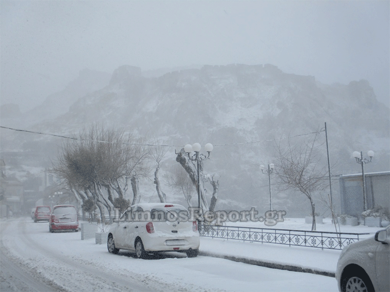 Στα λευκά λόγω της ισχυρής χιονόπτωσης ντύθηκε η Λήμνος.
