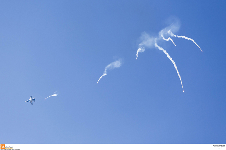 Ο χειριστής του F-16 χάρισε μια εντυπωσιακή επίδειξη, με ελιγμούς που έκοψαν την ανάσα, αποσπώντας το χειροκρότημα των επισήμων και των πολιτών που παραβρέθηκαν στην παρέλαση.