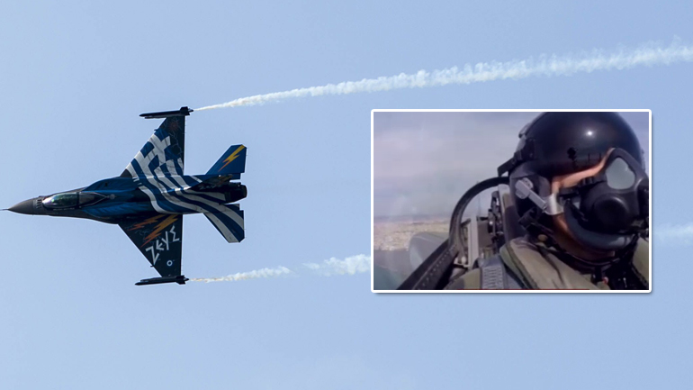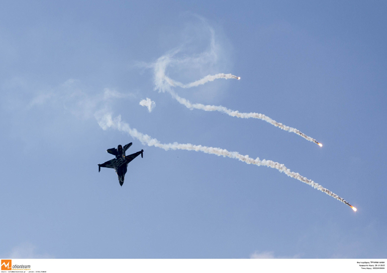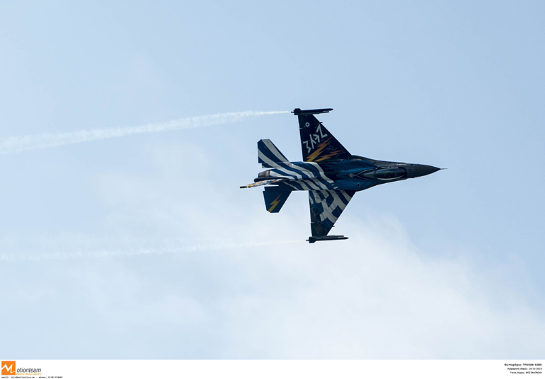 Ο χειριστής του F-16 χάρισε μια εντυπωσιακή επίδειξη, με ελιγμούς που έκοψαν την ανάσα, αποσπώντας το χειροκρότημα των επισήμων και των πολιτών που παραβρέθηκαν στην παρέλαση.