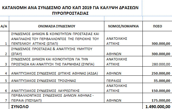 Το υπουργείο Εσωτερικών ενέκρινε κονδύλι ύψους 1.490.000,00 ευρώ που θα διοχετευθεί σε Συνδέσμους ΟΤΑ της χώρας, για την κάλυψη δράσεων πυροπροστασίας...
