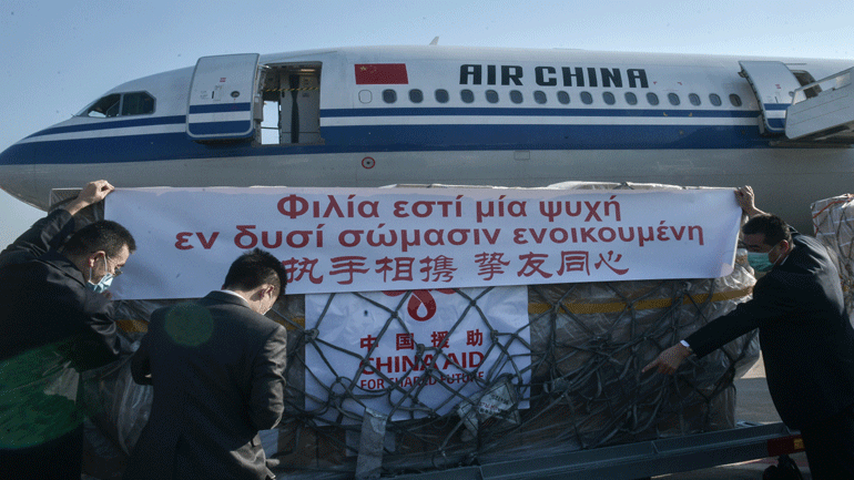 Έφτασε λίγα λεπτά μετά τις 8:00 το πρωί στο αεροδρόμιο Ελευθέριος Βενιζέλος το αεροπλάνο της Air China που μετέφερε την παρεχόμενη βοήθεια, υπό μορφή υγειονομικού υλικού, από την Κίνα στην Ελλάδα για την αντιμετώπιση των επειγουσών αναγκών της χώρας μας λόγω κορωνοϊού.