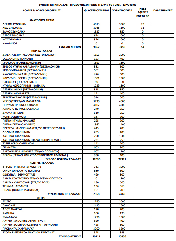 Συνολικά 57.205 μετανάστες και πρόσφυγες παραμένουν σε κέντρα φιλοξενίας ανά την ελληνική επικράτεια, σύμφωνα με τα στοιχεία που δόθηκαν στη δημοσιότητα το πρωί της Πέμπτης.