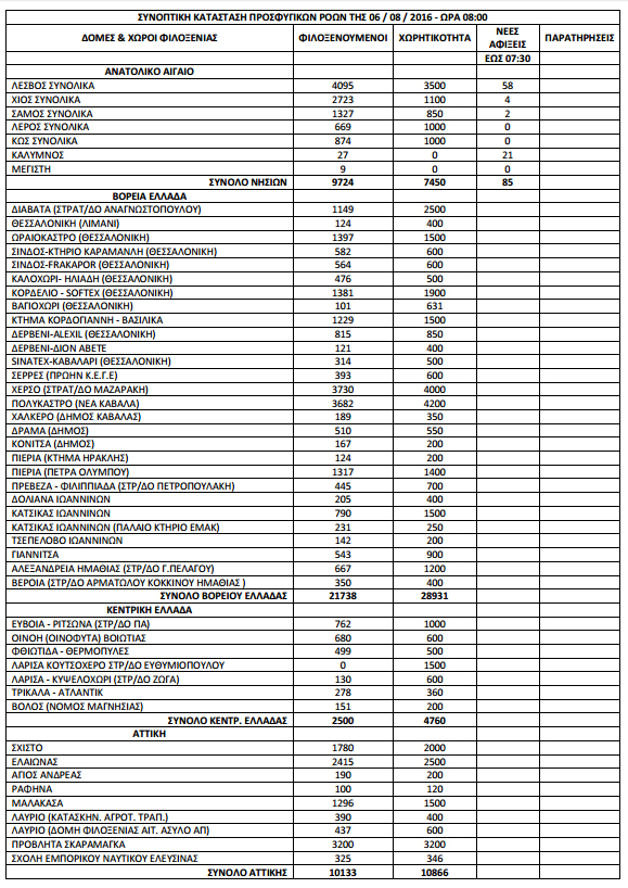 Συνολικά 57.025 πρόσφυγες και μετανάστες παραμένουν σε κέντρα φιλοξενίας ανά την ελληνική επικράτεια, σύμφωνα με τα στοιχεία που δόθηκαν στη δημοσιότητα το πρωί του Σαββάτου.
