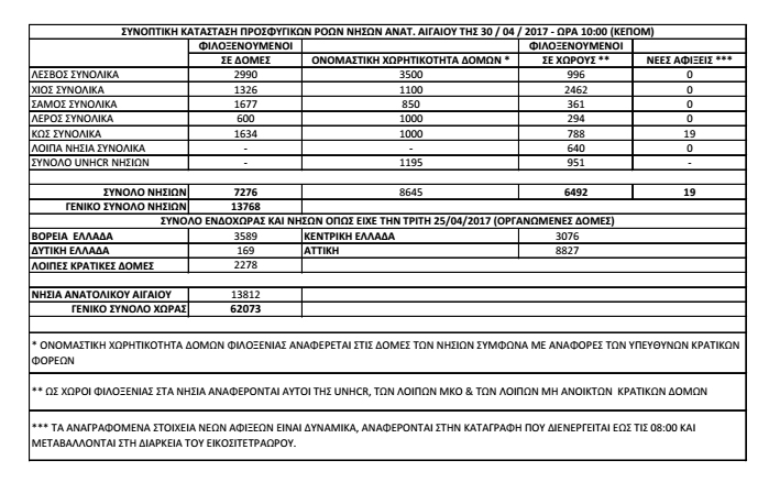 Συνολικά 62.073 πρόσφυγες και μετανάστες βρίσκονται σε κέντρα φιλοξενίας ανά την ελληνική επικράτεια, σύμφωνα με τα στοιχεία που δόθηκαν στη δημοσιότητα το πρωί της Κυριακής.
