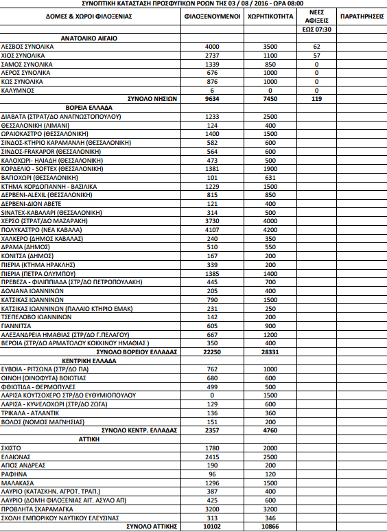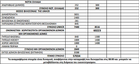 Συνολικά 57.034 πρόσφυγες και μετανάστες παραμένουν σε κέντρα φιλοξενίας ανά την ελληνική επικράτεια, σύμφωνα με τα στοιχεία που δόθηκαν στη δημοσιότητα το πρωί της Τετάρτης.