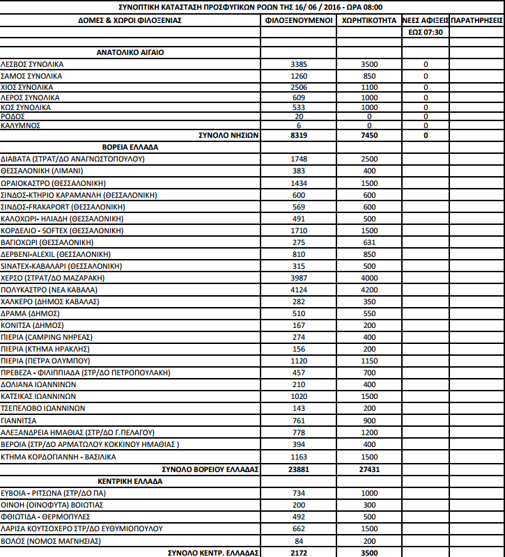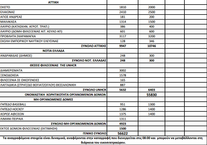 Συνολικά 56.622 πρόσφυγες και μετανάστες παραμένουν στην ελληνική επικράτεια σε διάφορες δομές φιλοξενίας.