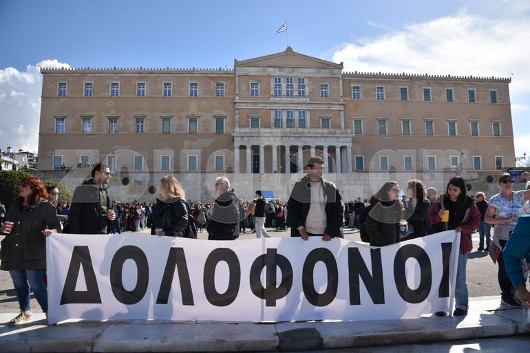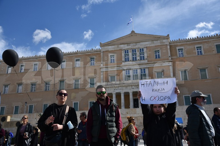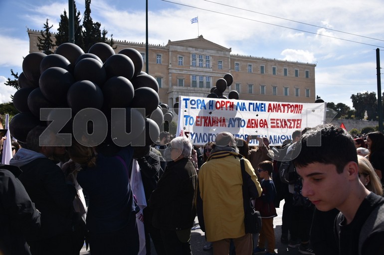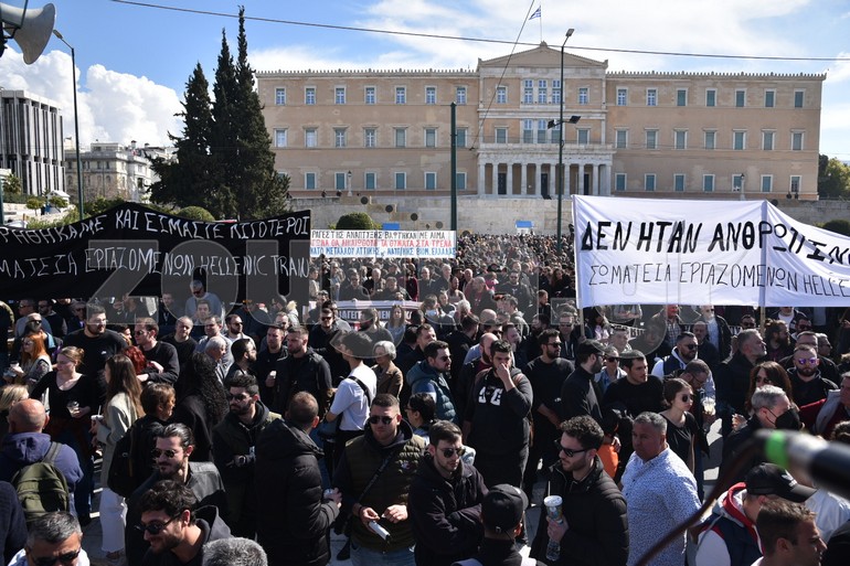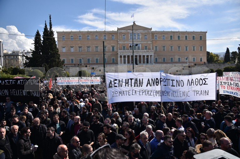 Ολοκληρώθηκε στο Σύνταγμα το μεγάλο συλλαλητήριο για τα θύματα της πολύνεκρης σιδηροδρομικής τραγωδίας στα Τέμπη.