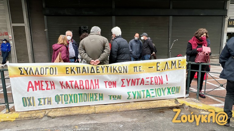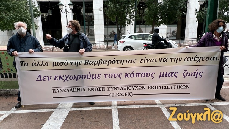 Συγκέντρωση διαμαρτυρίας πραγματοποίησαν σήμερα έξω από το Υπουργείο Εργασίας συνταξιούχοι της Πανελλήνιας Ένωσης Συνταξιούχων Εκπαιδευτικών (ΠΕΣΕΚ), με τη συμμετοχή της ΟΛΜΕ, παρά τις δυσμενείς καιρικές συνθήκες.