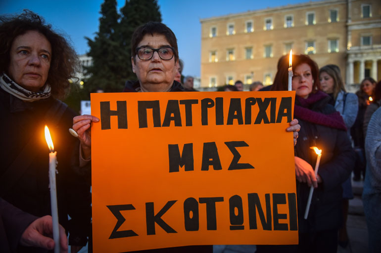 Οι συμμετέχοντες εξέφρασαν τη θλίψη τους για το έγκλημα αλλά και την αντίθεσή τους σε λογικές και πρακτικές έμφυλης βίας.