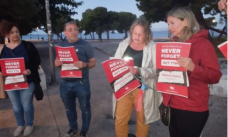Την ίδια ώρα ακριβώς, που ξεκίνησε η φονική επίθεση πριν από έναν χρόνο, στις 6.29 το πρωί., τα μέλη της πρωτοβουλίας διάβασαν τα ονόματα των 1.170 ανθρώπων που έχασαν τη ζωή τους και των 255 που απήχθησαν, κρατώντας αφίσες που έγραφαν: «Μην ξεχάσεις ποτέ την 7η Οκτωβρίου».