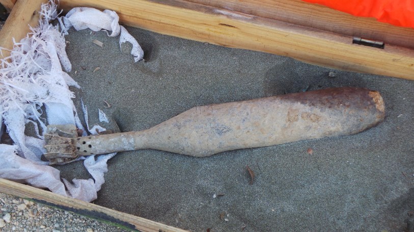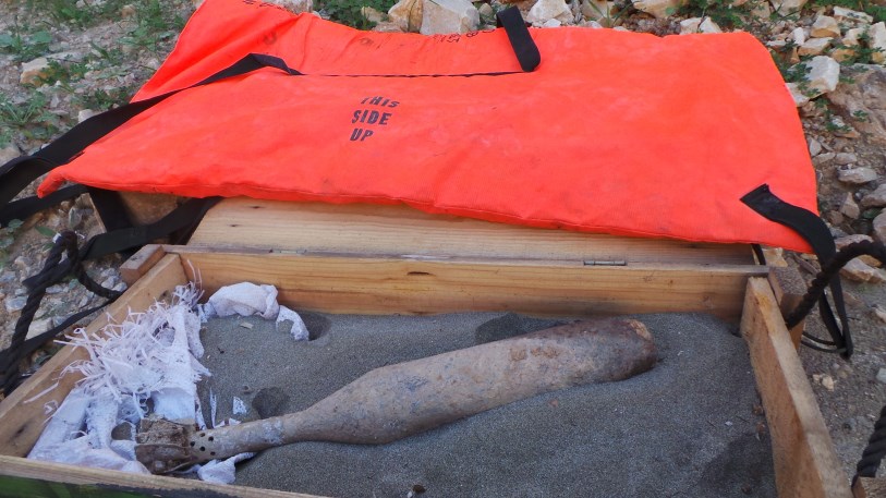 Αφού συλλέχθηκε το «Καπνογόνο λευκού φωσφόρου», δυτικής προέλευσης, 81 χιλιοστών, του Β’ Παγκοσμίου Πολέμου, ακολουθήθηκε η διαδικασία για την εξουδετέρωσή του, με τις αρχές να μεταφέρουν το επικίνδυνο βλήμα από τον Πάγο στην περιοχή Μαντρόνια.