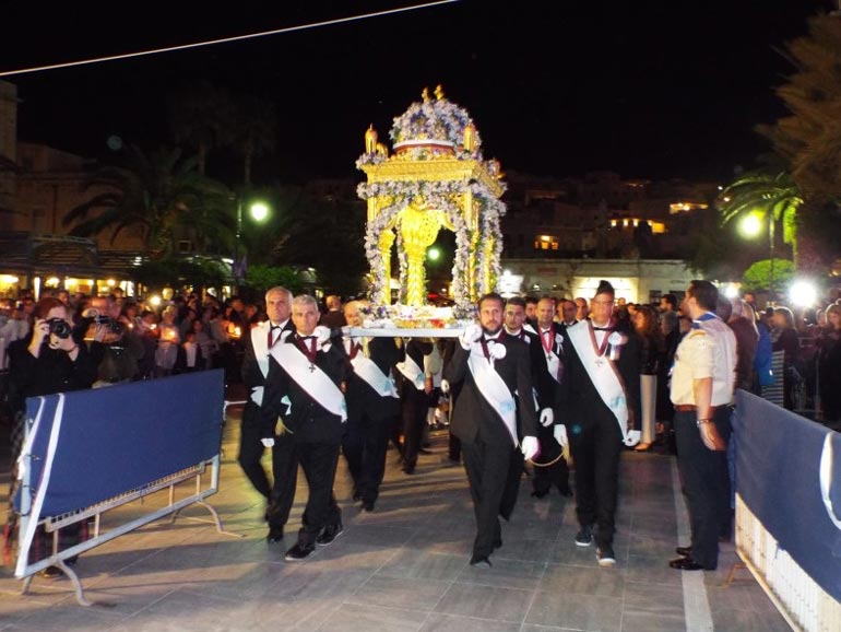 Νωρίτερα, είχε πραγματοποιηθεί η περιφορά του Επιταφίου του Ιερού Καθολικού Ναού της Ευαγγελίστριας, την οποία συνόδευε η μικτή χορωδία της ενορίας και πλήθος πιστών.