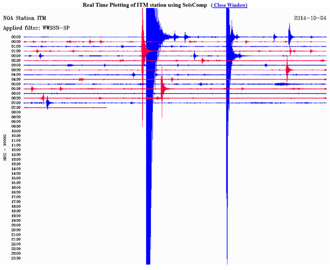 Δείτε τη σεισμική δόνηση όπως την κατέγραψε ο σεισμογράφος του Γεωδυναμικού Ινστιτούτου του Εθνικού Αστεροσκοπείου Αθηνών, που βρίσκεται εγκατεστημένος στην Ιθώμη: