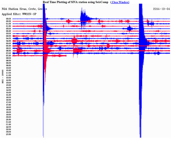 Δείτε τη σεισμική δόνηση όπως την κατέγραψε ο σεισμογράφος του Γεωδυναμικού Ινστιτούτου του Εθνικού Αστεροσκοπείου Αθηνών, που βρίσκεται εγκατεστημένος στην τοποθεσία «Σίβας»:
