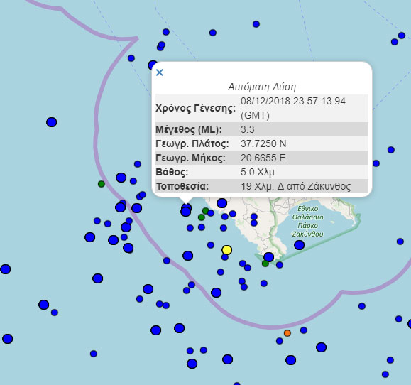 Ασθενής σεισμική δόνηση σημειώθηκε στις 1.57 τα ξημερώματα της Κυριακής στα ανοιχτά της Ζακύνθου.