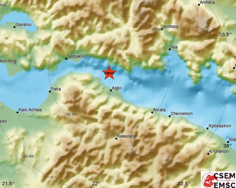 Το επίκεντρο εντοπίστηκε 10 χιλιόμετρα βορειοανατολικά του Αιγίου και το εστιακό βάθος υπολογίζεται στα 5 χιλιόμετρα.