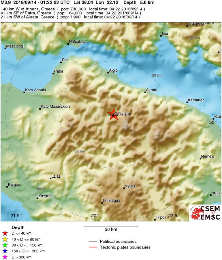 Το εστιακό βάθος του σεισμού μετρήθηκε στα 3,8 χιλιόμετρα.