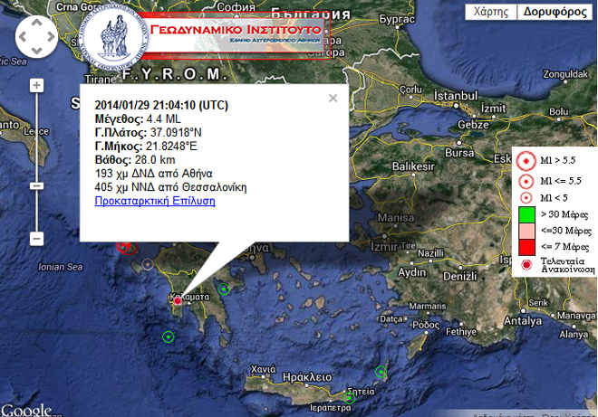 Το εστιακό βάθος υπολογίστηκε στα 28 χλμ.