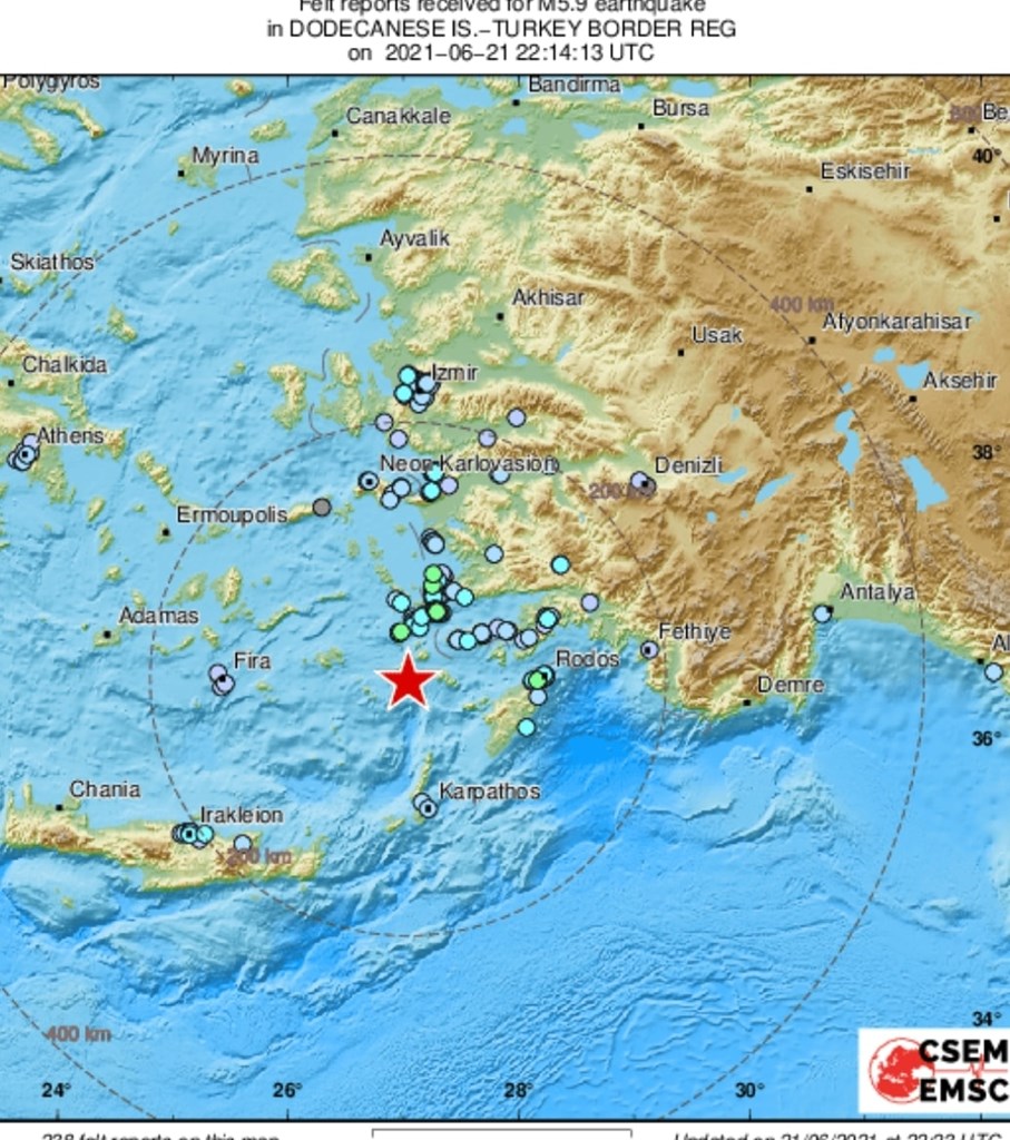 Το Ευρωμεσογειακό Σεισμολογικό Ινστιτούτο (EMSC) εκτίμησε από την πλευρά του ότι ο σεισμός ήταν ισχύος 5,9 βαθμών και ότι σημειώθηκε σε μικρό εστιακό βάθος περίπου 2 χιλιομέτρων.