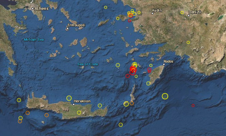 Λίγα λεπτά αργότερα ακολούθησε μετασεισμός 4 βαθμών της κλίμακας Ρίχτερ, με επίκεντρο 24 χλμ νοτιοδυτικά της Τήλου και εστιακό βάθος στα 10 χλμ.