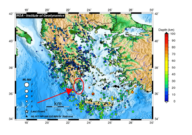 (Χάρτης με τις σεισμικές δονήσεις που έχουν καταγραφεί τις τελευταίες 30 μέρες)