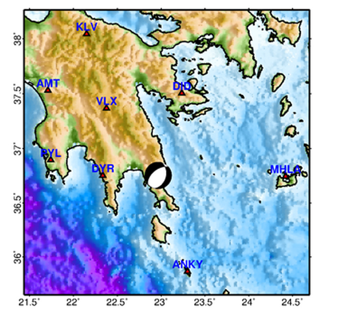 (Τοπογραφικός χάρτης στον οποίο εντοπίζεται η δόνηση)