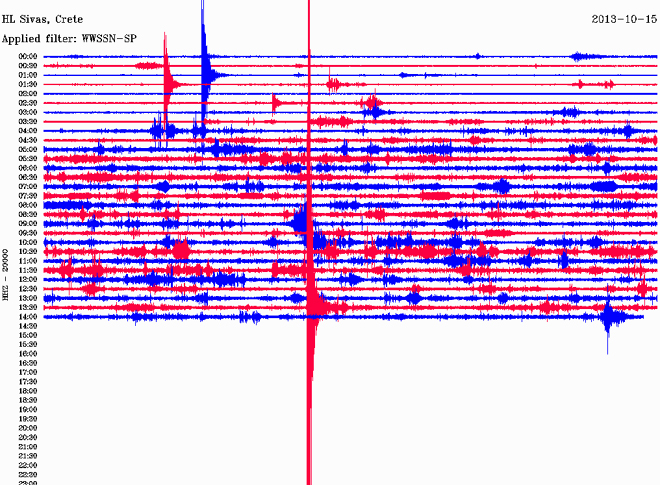 (Δείτε πώς κατέγραψε τη δόνηση ο σεισμογράφος του Γεωδυναμικού Ινστιτούτου του Εθνικού Αστεροσκοπείου Αθηνών που είναι εγκατεστημένος στο χωριό Σίβας, στο Ηράκλειο Κρήτης)