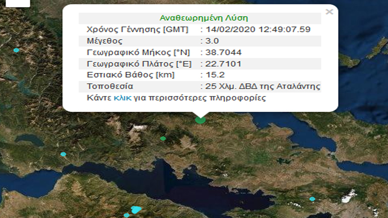 Σεισμική δόνηση μεγέθους 3 Ρίχτερ σημειώθηκε 25 χλμ. βορειοδυτικά της Αταλάντης...