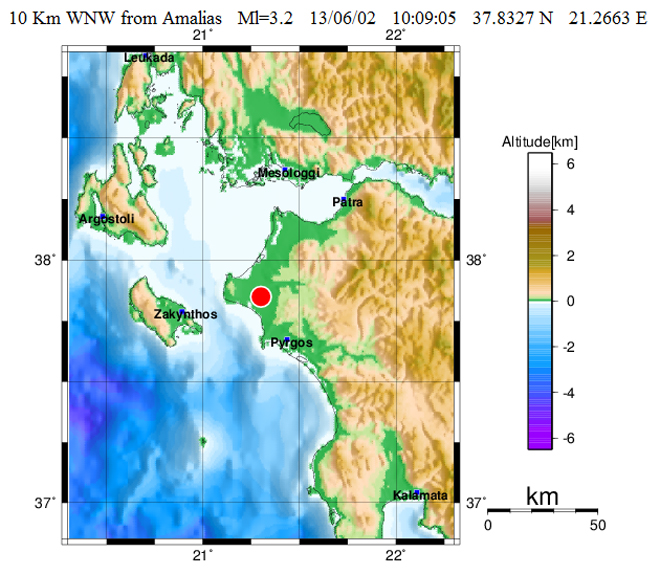 Ασθενής σεισμική δόνηση 3,2 βαθμών της κλίμακας Ρίχτερ σημειώθηκε στις 13.09 το μεσημέρι στο νομό Ηλείας.