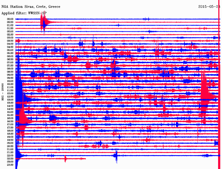 Δείτε πώς κατέγραψε τη δόνηση ο σεισμογράφος του Γεωδυναμικού Ινστιτούτου του Εθνικού Αστεροσκοπείου Αθηνών που είναι εγκατεστημένος στην τοποθεσία Σίβα της Κρήτης