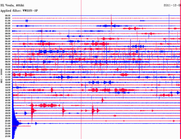 Δείτε πώς κατέγραψε τη δόνηση ο σεισμογράφος του Γεωδυναμικού Ινστιτούτου του Εθνικού Αστεροσκοπείου Αθηνών που είναι εγκατεστημένος στη Βούλα.