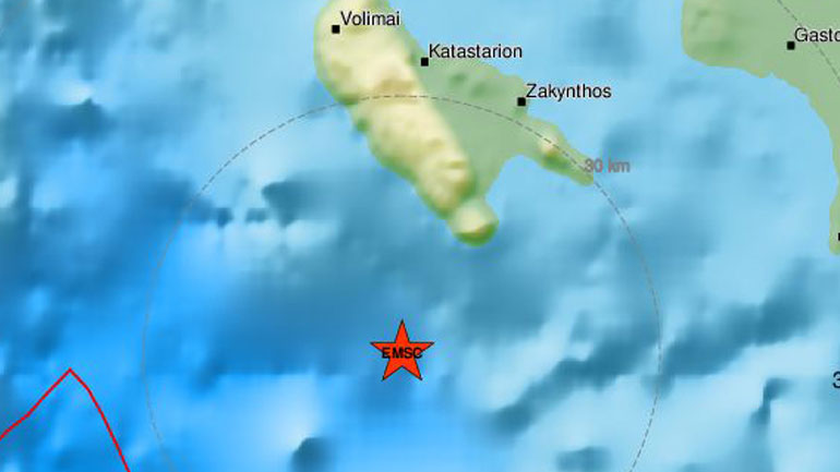 Η δόνηση είχε εστιακό βάθος 2 χλμ και επίκεντρο που εντοπίζεται στα 32 χλμ νοτιοδυτικά της Ζακύνθου.