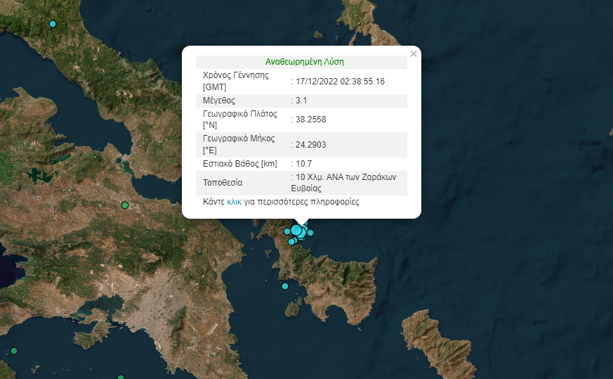 Λίγα λεπτά αργότερα σημειώθηκε και μετασεισμός μεγέθους 3,1 Ρίχτερ στην ίδια περιοχή σε εστιακό βάθος 10 χλμ. Η δόνηση έγινε αισθητή και στην Αττική.