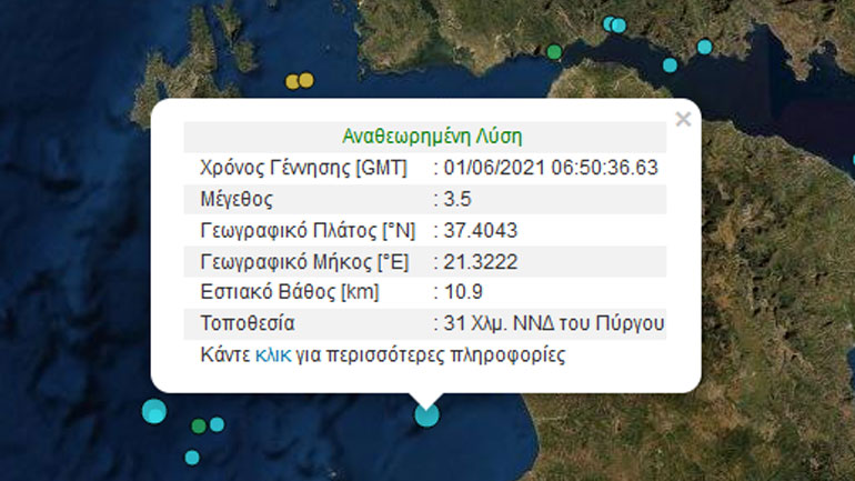 Σεισμός 3,5 Ρίχτερ στον Πύργο
