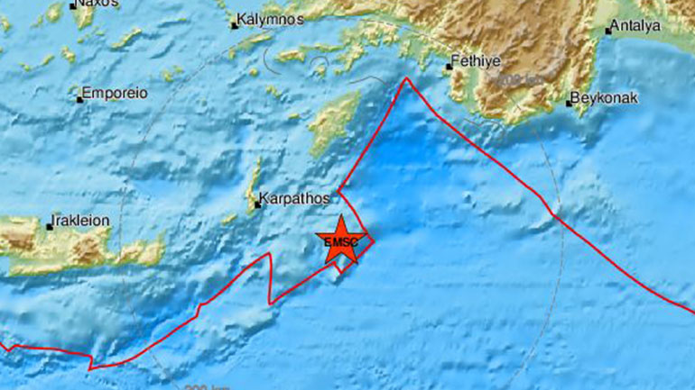 Η δόνηση είχε εστιακό βάθος 6,6 χλμ και το επίκεντρό της εντοπίζεται στα 80 χλμ ανατολικά της Καρπάθου.