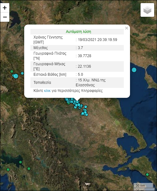 Σεισμική δόνηση μεγέθους 3,7 βαθμών της κλίμακας Ρίχτερ σημειώθηκε πριν από λίγο στην περιοχή της Ελασσόνας...