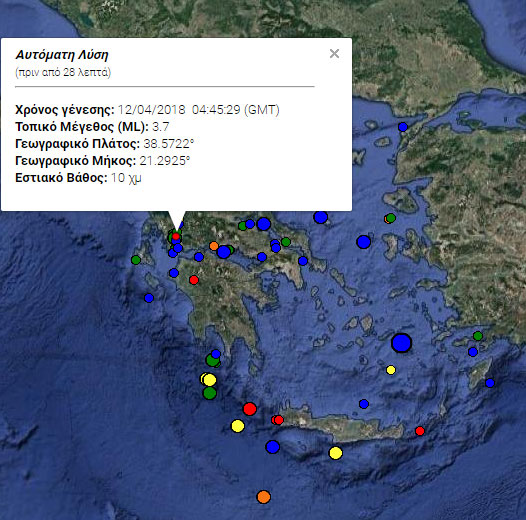 Σεισμική δόνηση μεγέθους 3,7 βαθμών της κλίμακας Ρίχτερ σημειώθηκε το πρωί κοντά στο Αγρίνιο.