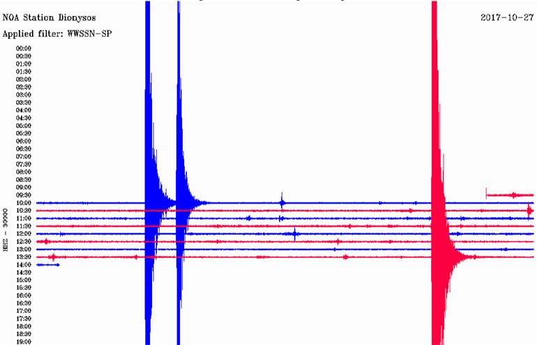 Δείτε πως κατέγραψε τον σεισμό στα Οινόφυτα ο σεισμογράφος που βρίσκεται στον Διόνυσο: