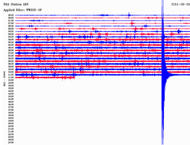Δείτε πώς κατέγραψε τη δόνηση ο σεισμογράφος του Γεωδυναμικού Ινστιτούτου του Εθνικού Αστεροσκοπείου Αθηνών που είναι εγκατεστημένος στα Ιωάννινα: