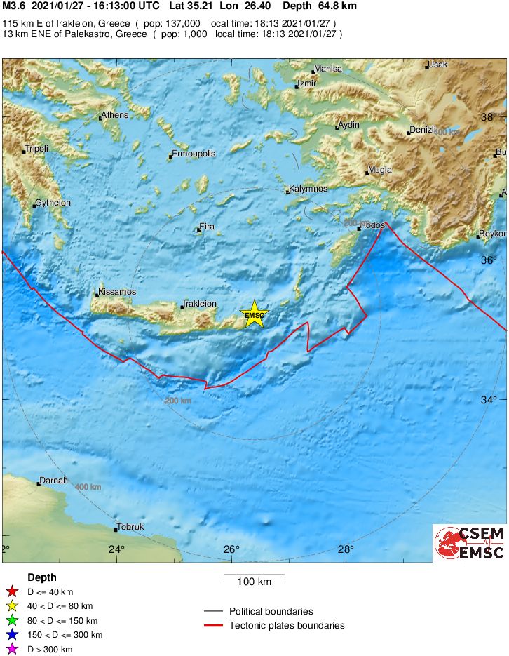 Σύμφωνα με το Ευρωμεσογειακό κέντρο ο σεισμός είχε μέγεθος 3,6 βαθμούς της κλίμακας ρίχτερ.