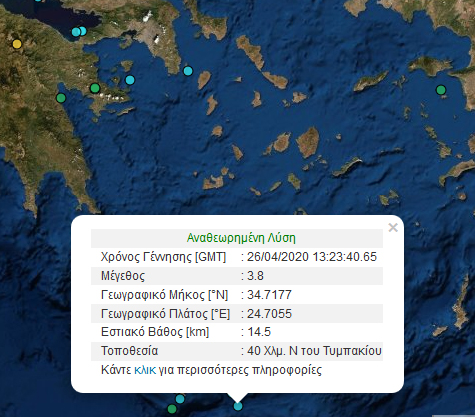 Σεισμική δόνηση εντάσεως 3,8 Ρίχτερ, σημειώθηκε λίγο μετά τις 4 το μεσημέρι 40 χλμ Νότια του Τυμπακίου...