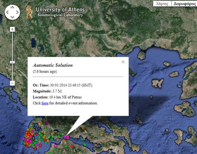 Σεισμική δόνηση μεγέθους 3,7 βαθμών της κλίμακας Ρίχτερ σημειώθηκε στις 1.48 τα ξημερώματα στον θαλάσσιο χώρο νοτιοανατολικά της Ναυπάκτου.