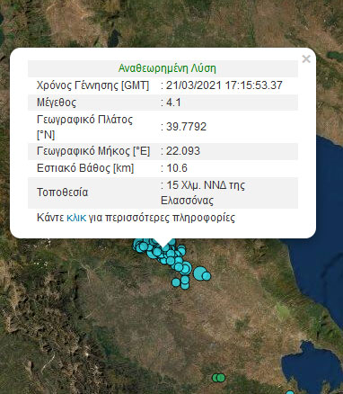 Σεισμός 4,1 Ρίχτερ στην Ελασσόνα