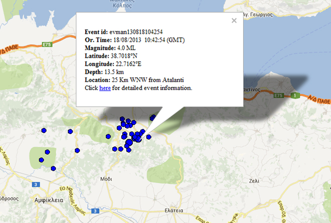 Σύμφωνα με ανακοίνωση του Γεωδυναμικού Ινστιτούτου του Εθνικού Αστεροσκοπείου Αθηνών ο σεισμός εντοπίζεται 25 χιλιόμετρα δυτικά βορειοδυτικά της Αταλάντης, 119 χιλιόμετρα βορειοδυτικά της Αθήνας και