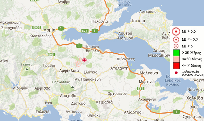 Σεισμική δόνηση μεγέθους 4,0 βαθμών της κλίμακας Ρίχτερ σημειώθηκε στις 13.42 το μεσημέρι στην Αμφίκλεια.