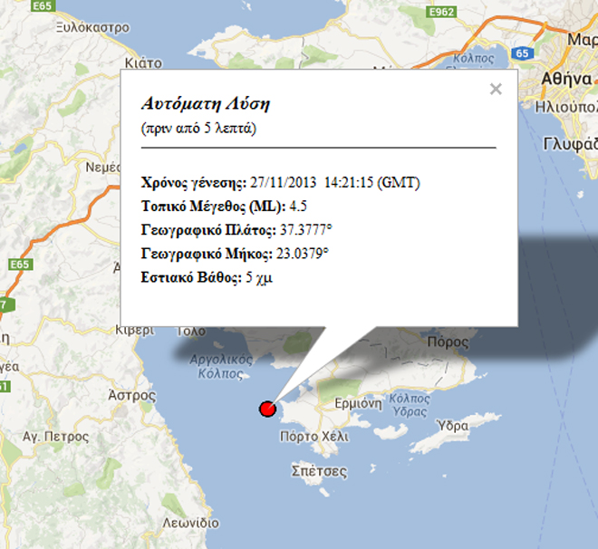 Το επίκεντρο της δόνησης προερχόταν από απόσταση 94 χιλιομέτρων νοτιοδυτικά της Αθήνας.