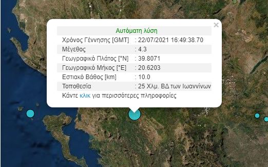 Σεισμός 4,3 Ρίχτερ στα Ιωάννινα